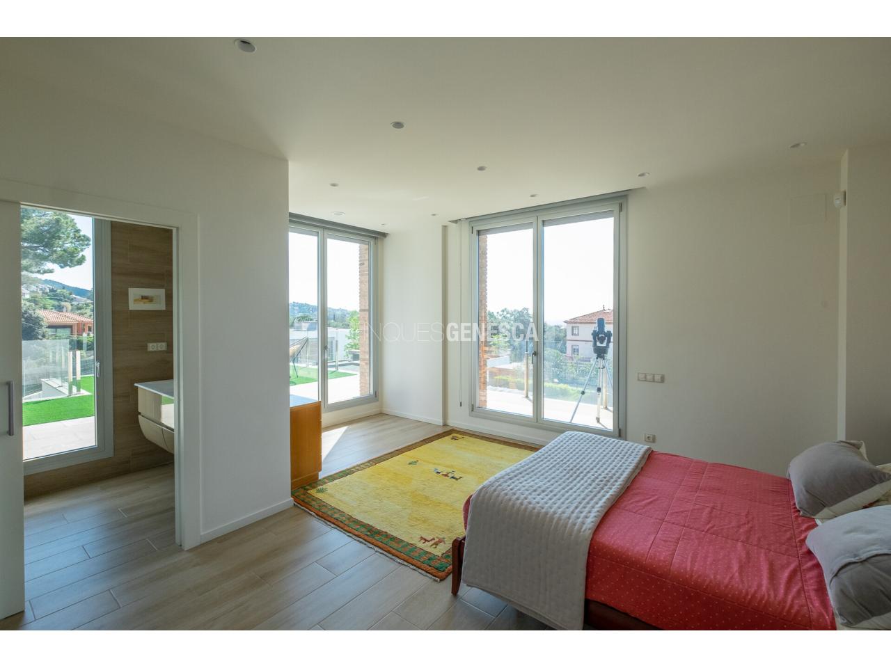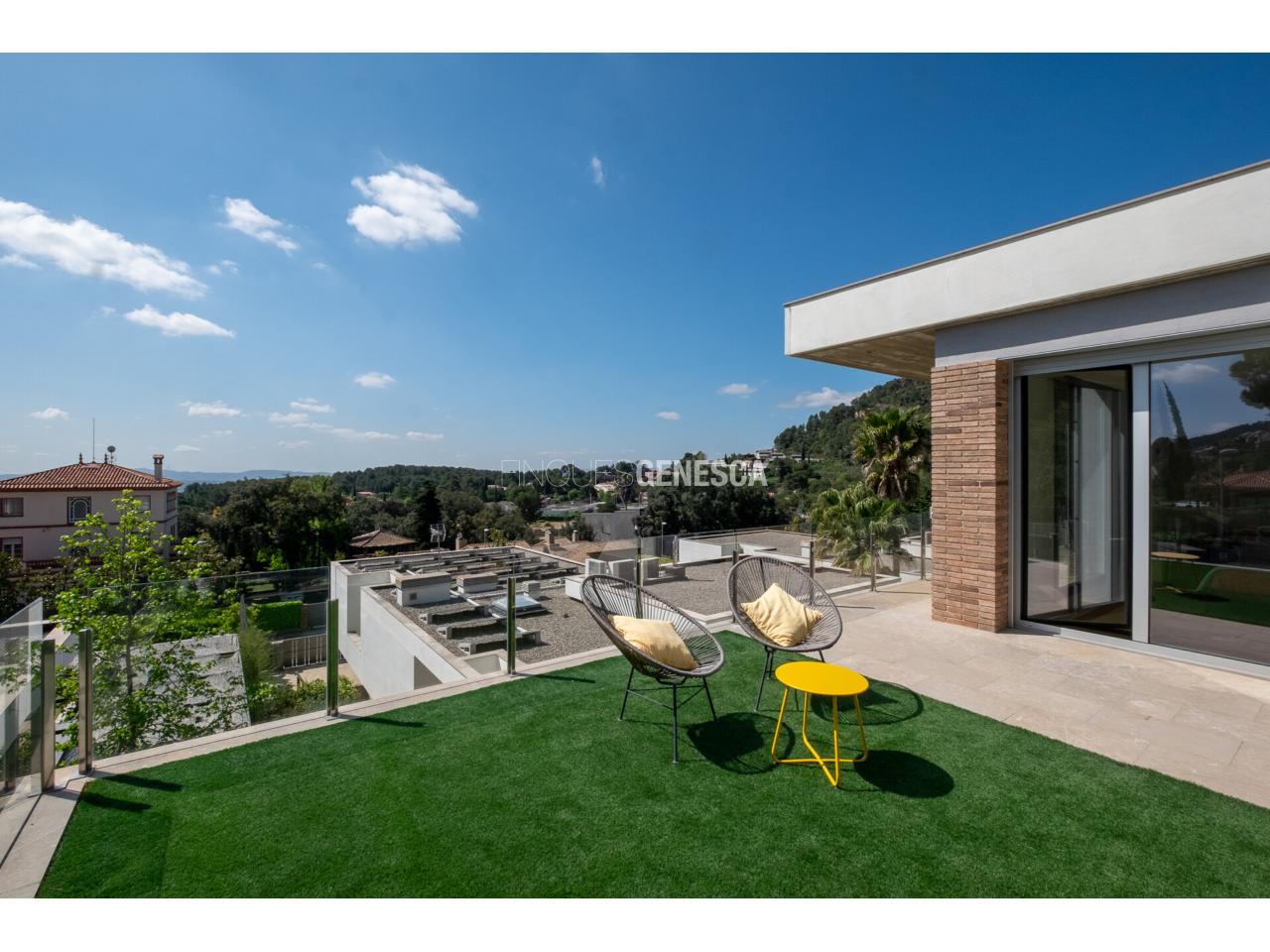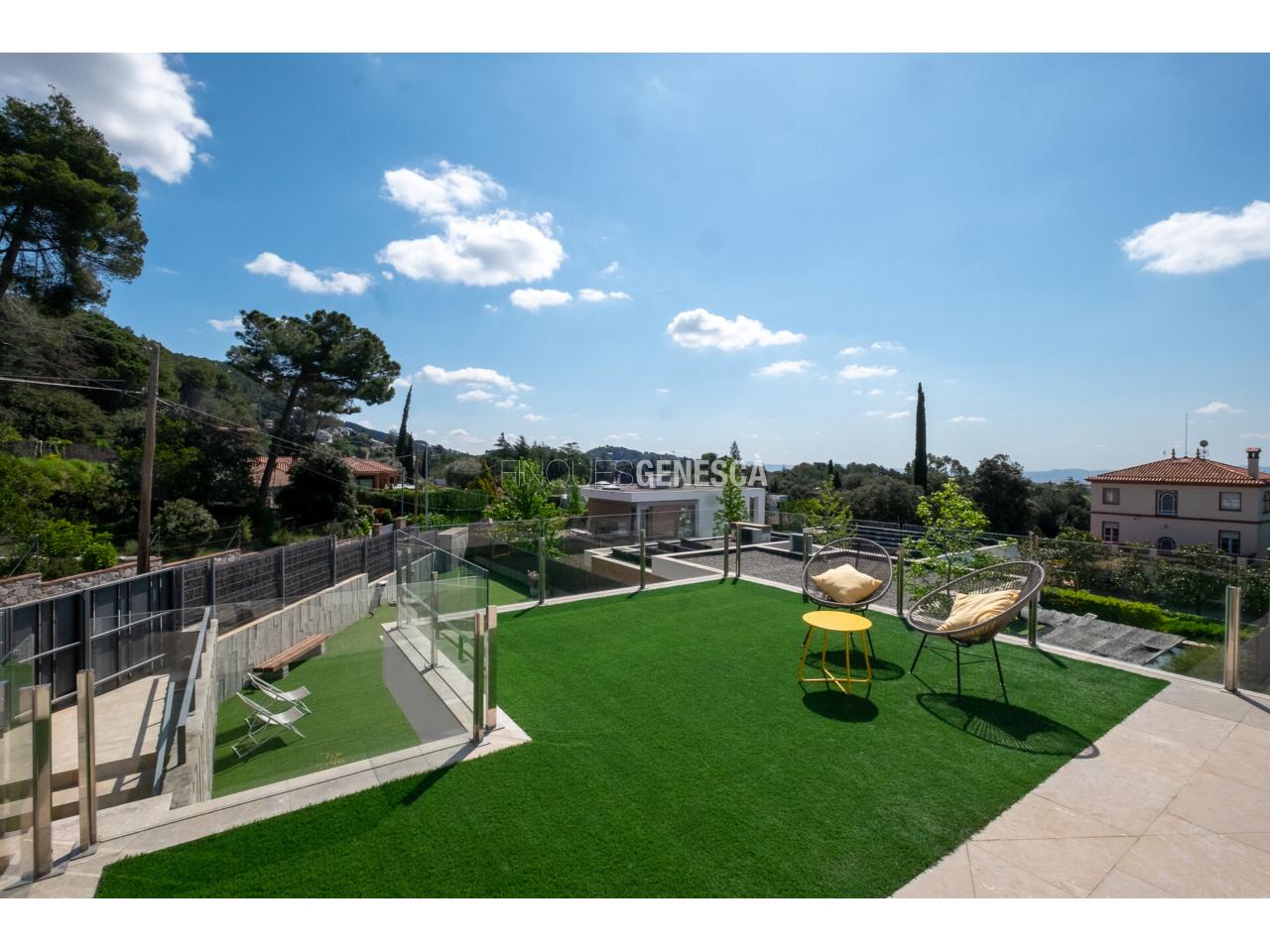 Aquesta magnífica casa unifamiliar destaca per la seva arquitectura moderna, orientació privilegiada (est, sud i oest) i unes vistes excepcionals a Collserola, el Tibidabo i el mar. La propietat té un total de 325 m2 que es distribueix en dues plantes i una parcel.la de 808 m2.
