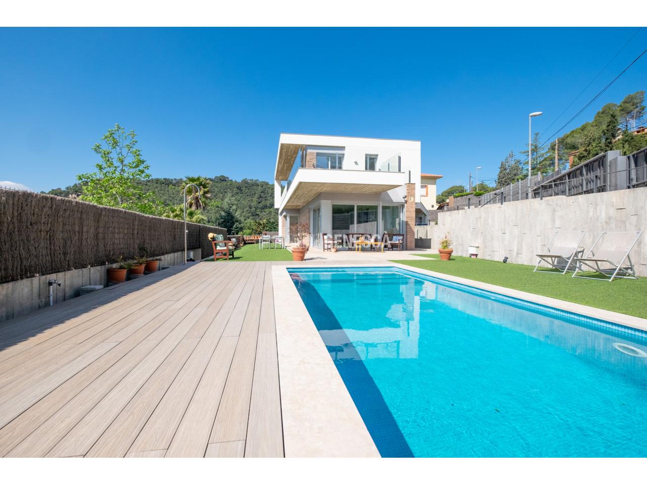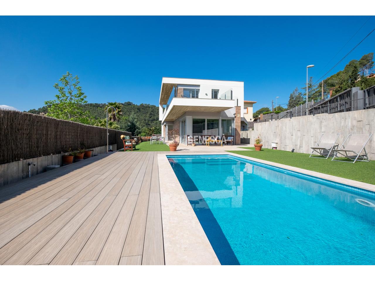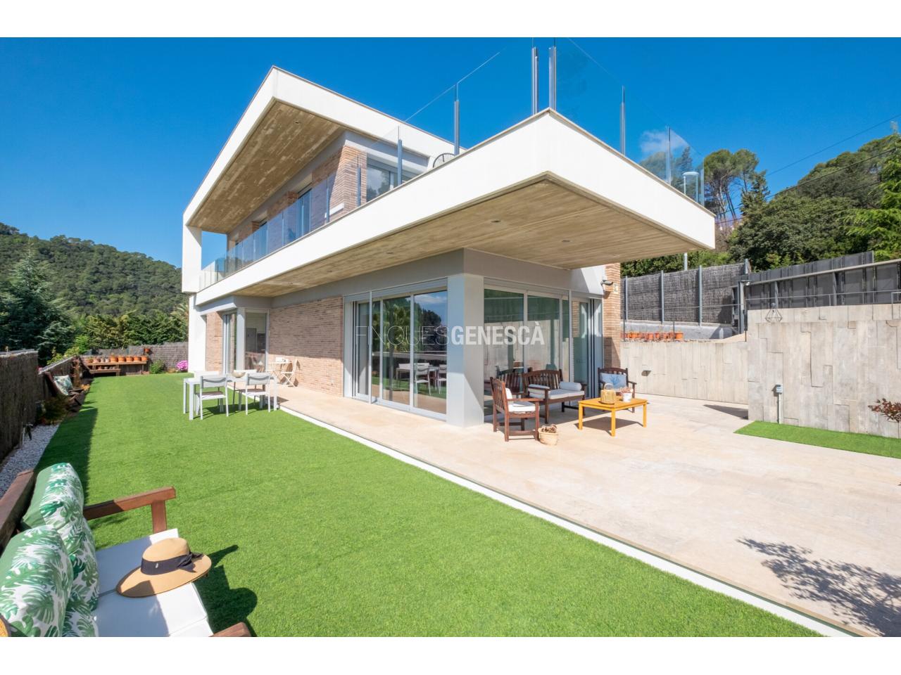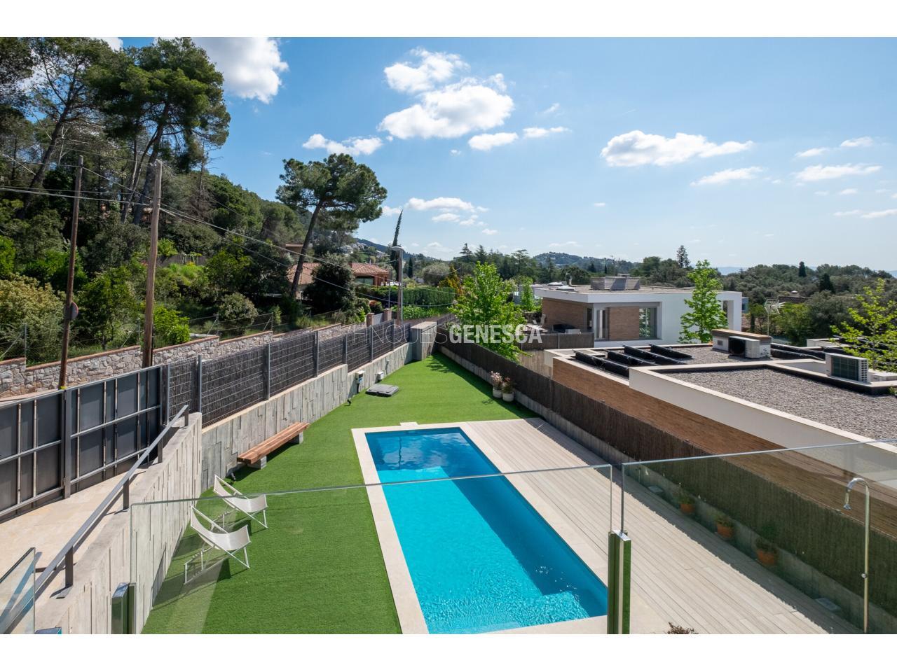 Aquesta magnífica casa unifamiliar destaca per la seva arquitectura moderna, orientació privilegiada (est, sud i oest) i unes vistes excepcionals a Collserola, el Tibidabo i el mar. La propietat té un total de 325 m2 que es distribueix en dues plantes i una parcel.la de 808 m2.