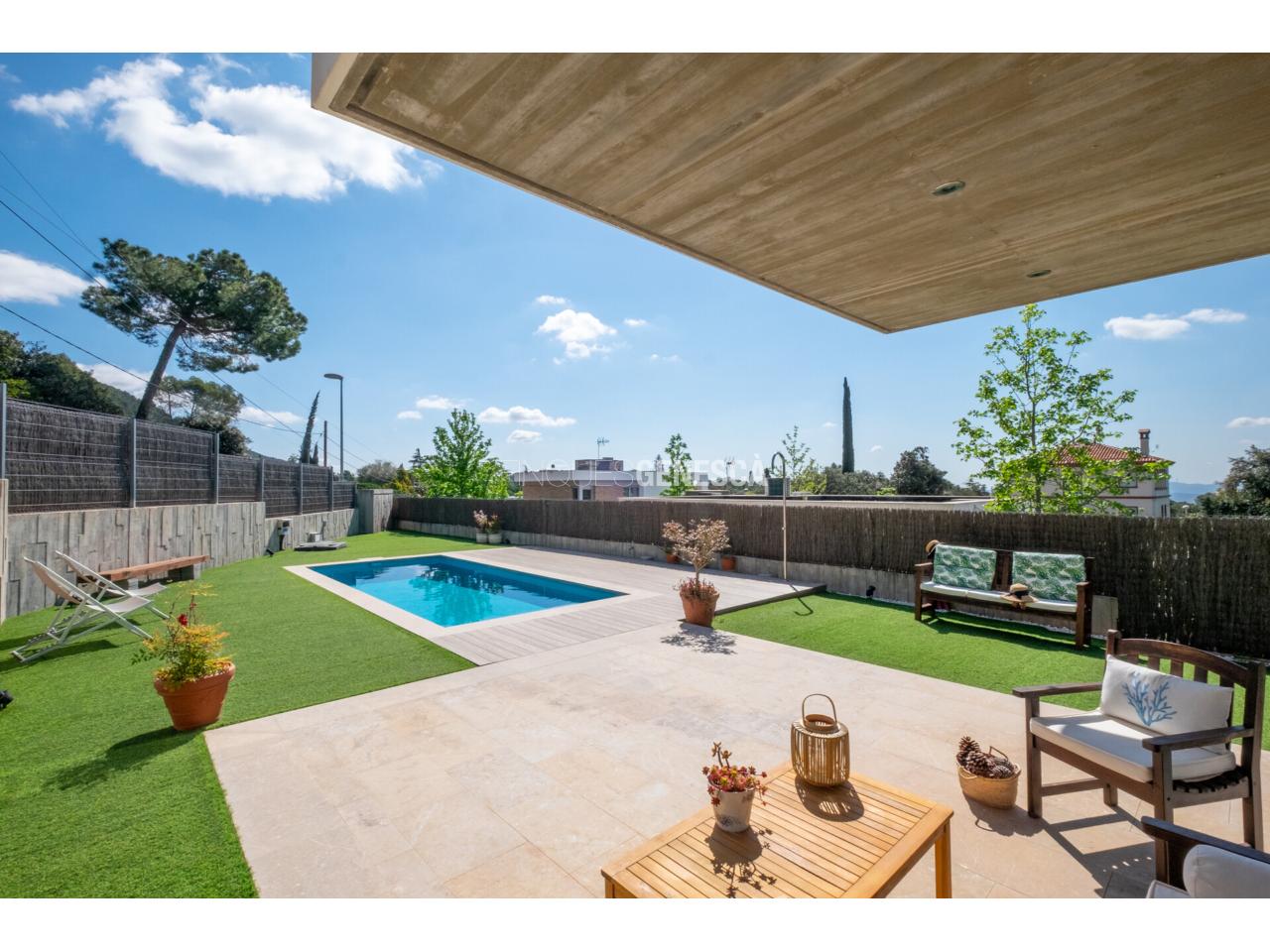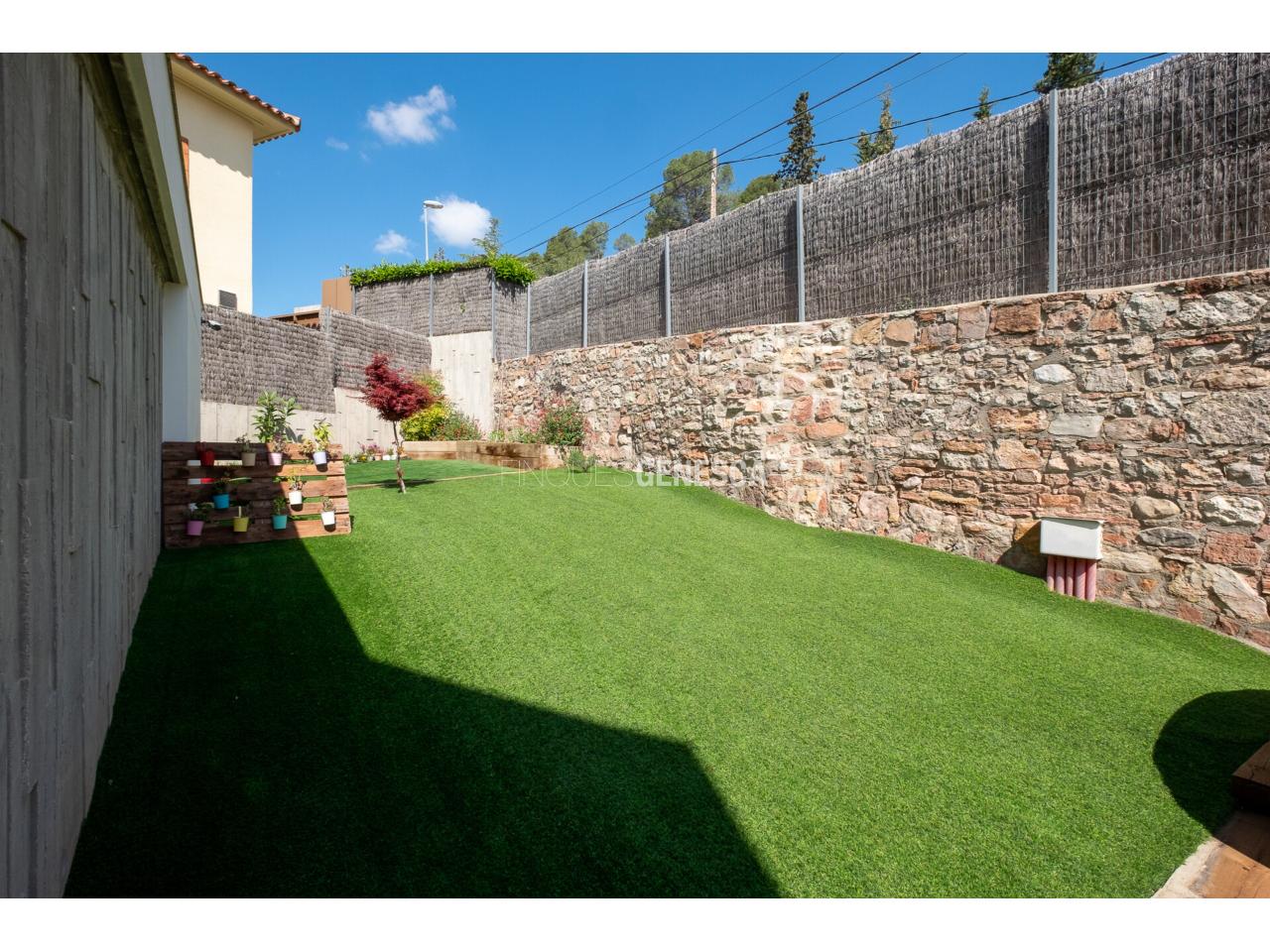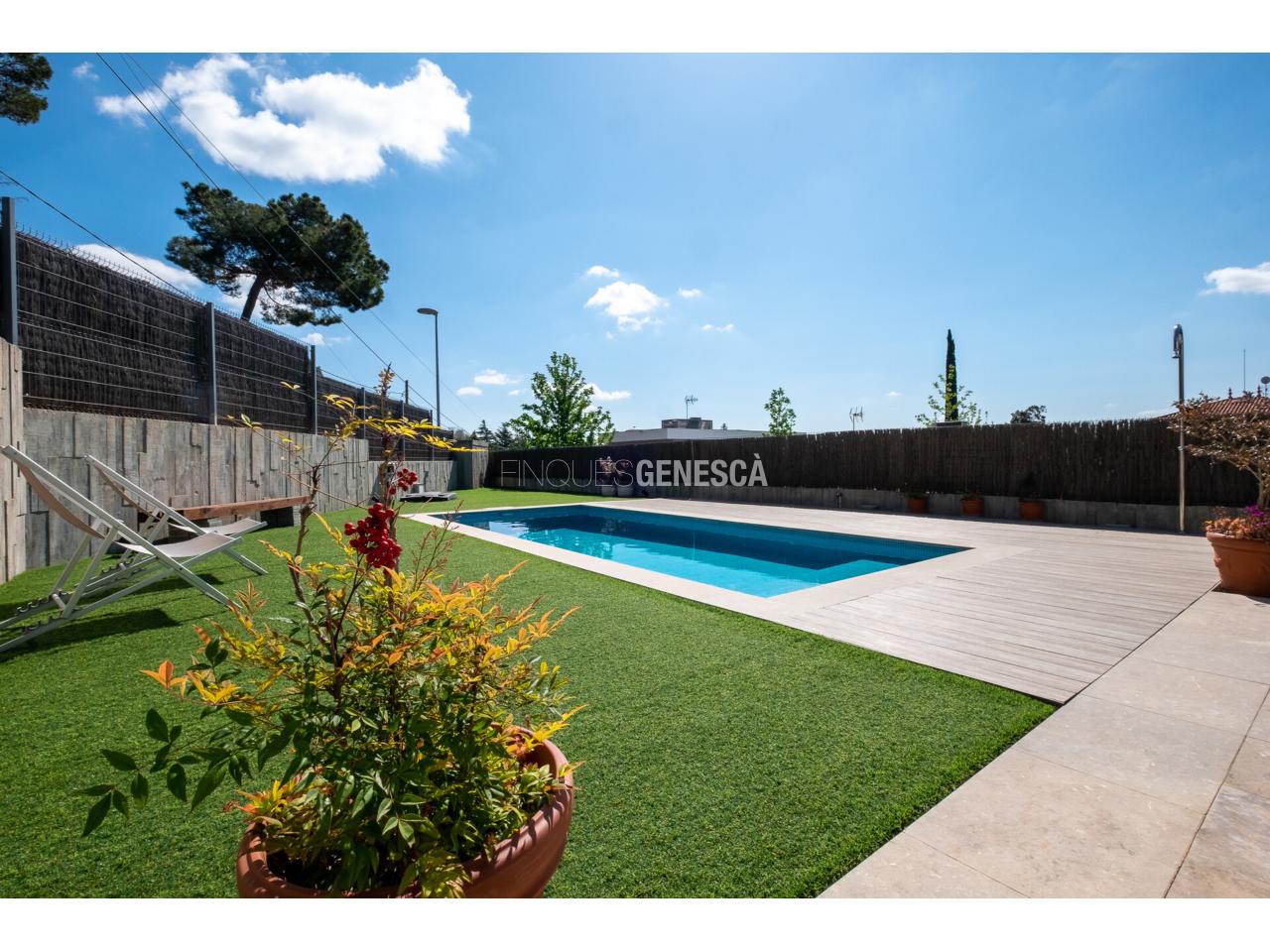 El jardí és un oasi privat amb gespa artificial de fàcil manteniment, diverses zones per a descansar i una piscina de 21 m² amb espai de jacuzzi i dutxa exterior. Aquesta zona està dissenyada per gaudir del bon temps amb mínim esforç de manteniment.