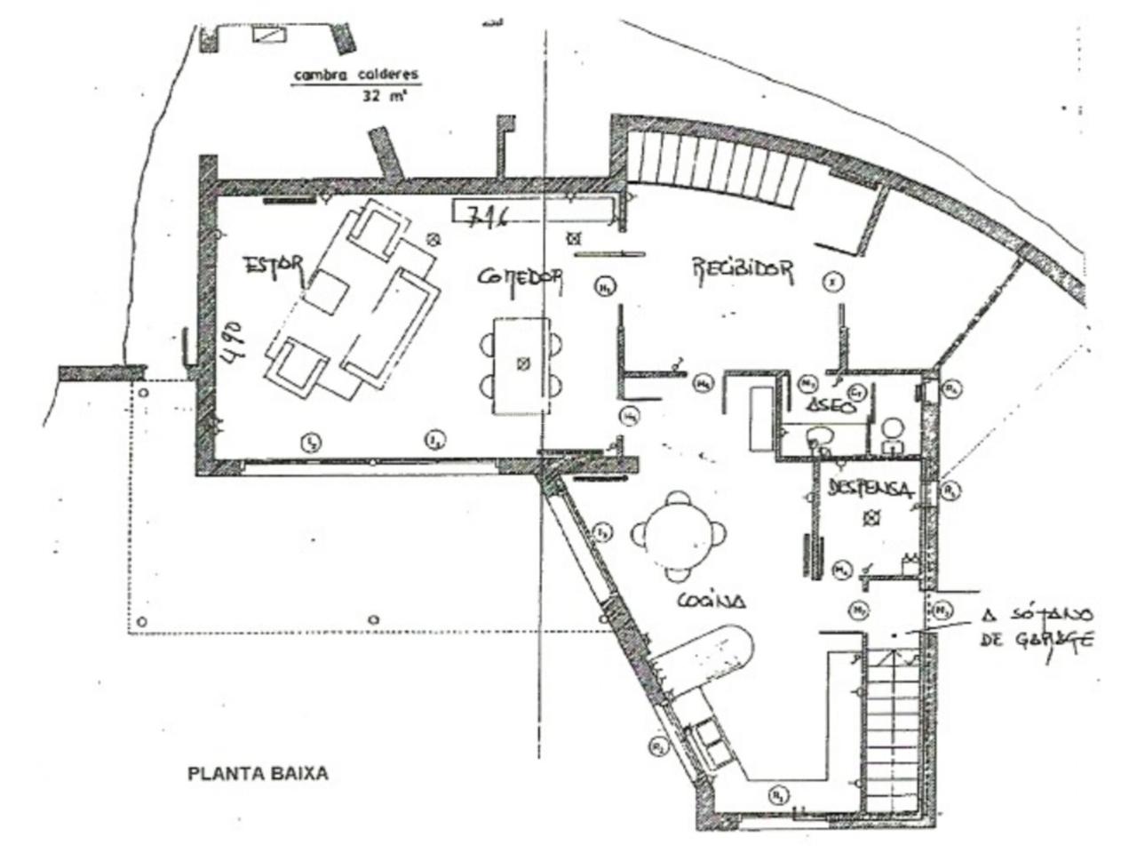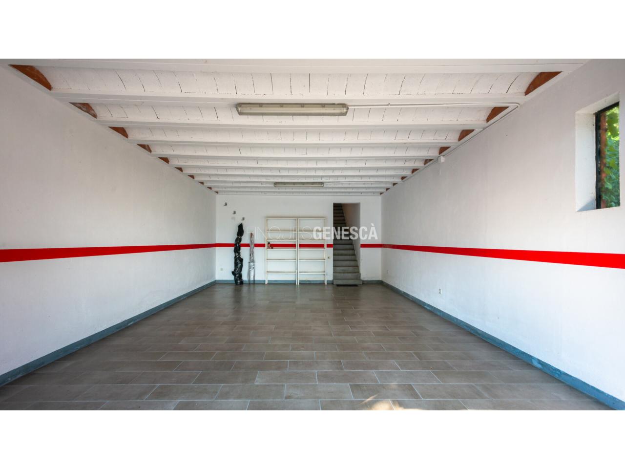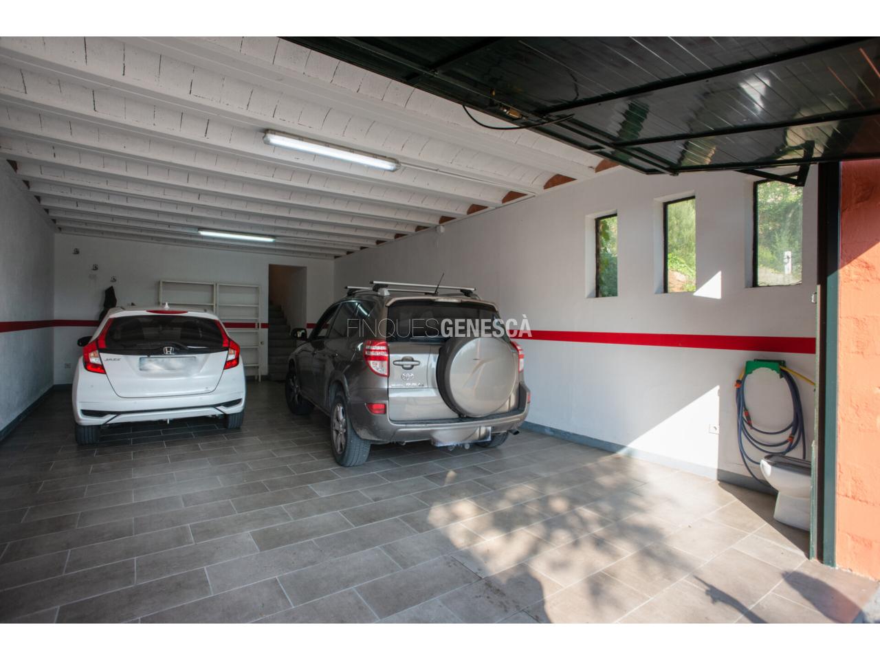 El sótano dispone de un garaje de 75 m² con capacidad para cuatro vehículos, motos y bicicletas, con puerta motorizada y acceso directo a la casa.