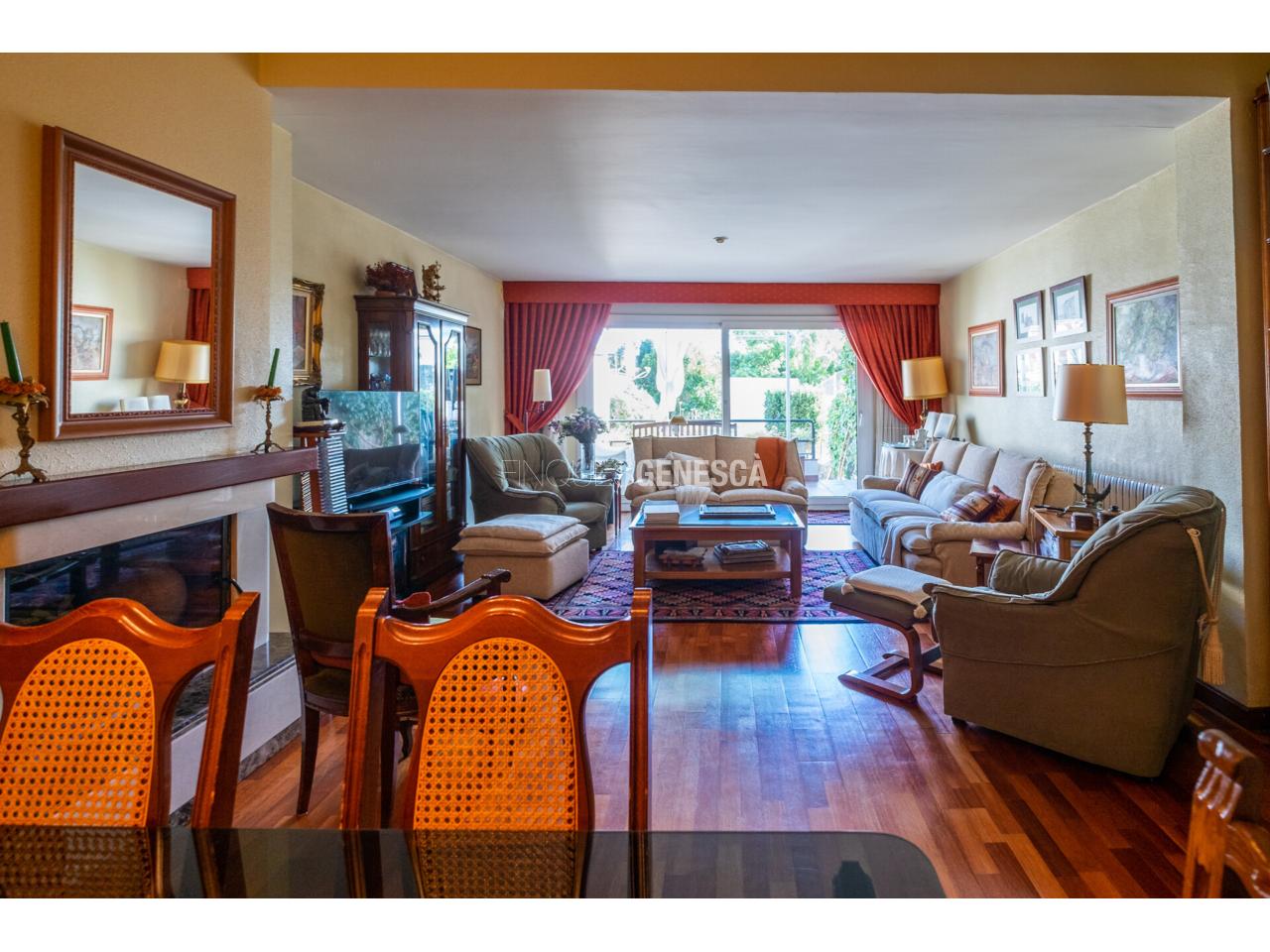 A la planta principal hi trobem la zona de dia, formada per un saló-menjador molt lluminós amb llar de foc i accés directe a la terrassa i al jardí, que gaudeixen de sol durant tot el dia. La cuina, independent i totalment equipada, es complementa amb un lavabo de cortesia.