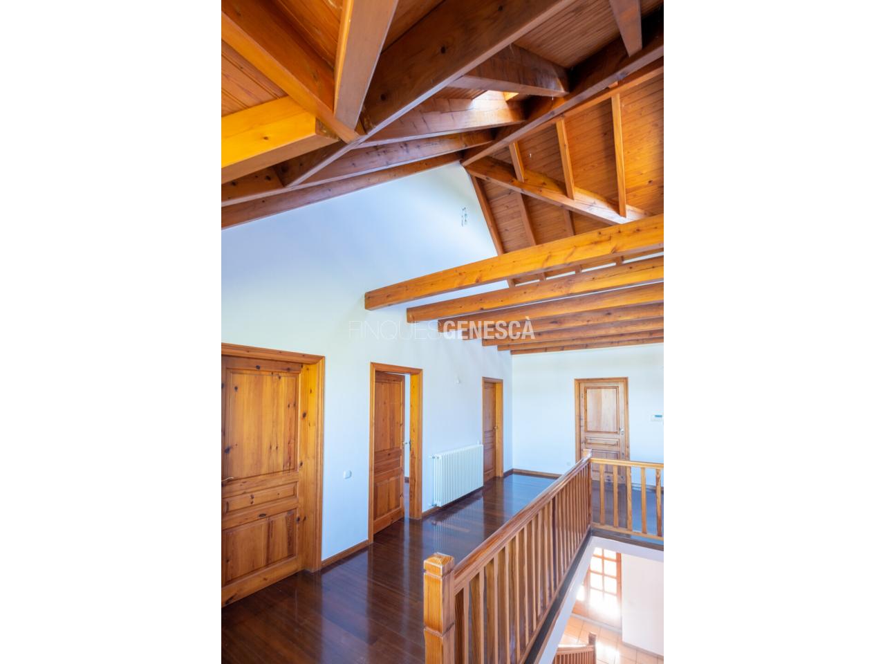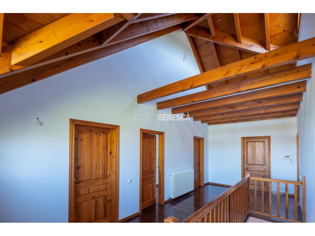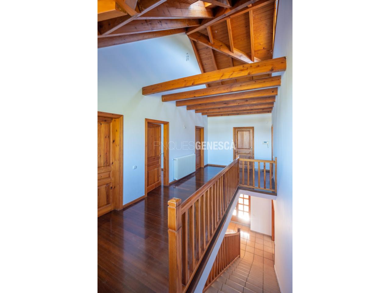 Pel que fa a l’equipament, la casa compta amb calefacció de sòl radiant amb gasoil, fibra òptica, carpinteria exterior de pi barnissat amb doble vidre, paviments de gres i parquet, sostres amb bigues de fusta i portes motoritzades al garatge.