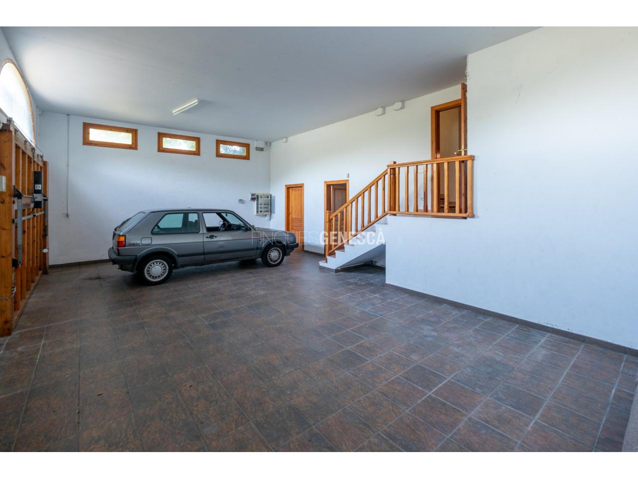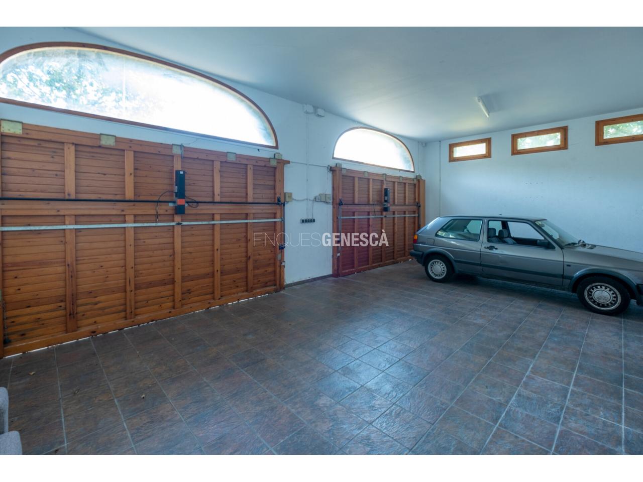A la planta semisoterrani hi trobem la bodega, el rebost, el safareig, una habitació de servei i un bany complet. També disposa d’un garatge de 50 m² amb dues portes automàtiques i capacitat per a diversos vehicles, amb accés directe a l’exterior.