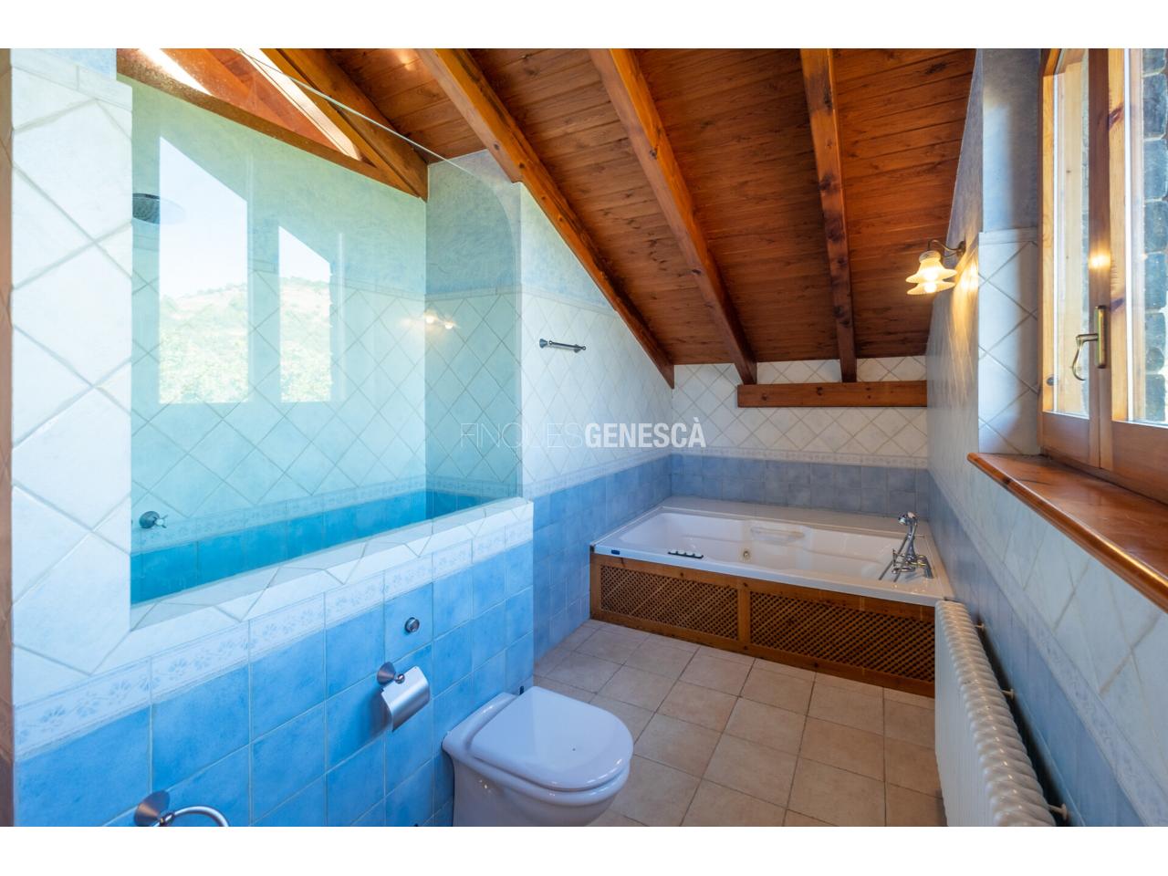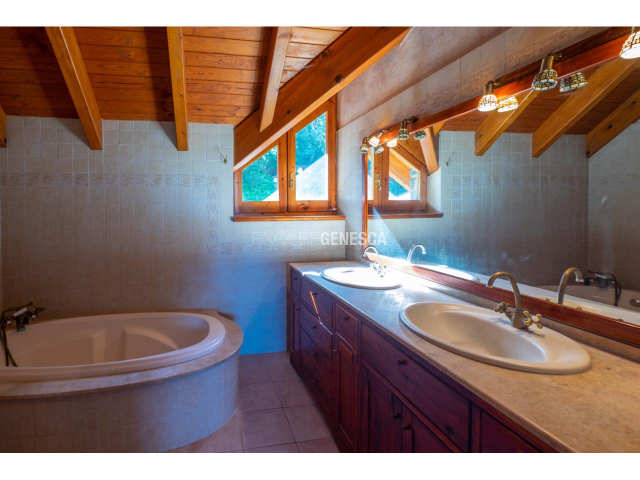 A la planta superior hi ha una suite principal amb banyera d’hidromassatge, tres dormitoris dobles addicionals i un altre bany complet. Els espais són amplis, lluminosos i molt ben ventilats, amb un distribuïdor de 15 m² que aporta sensació d’obertura i confort.