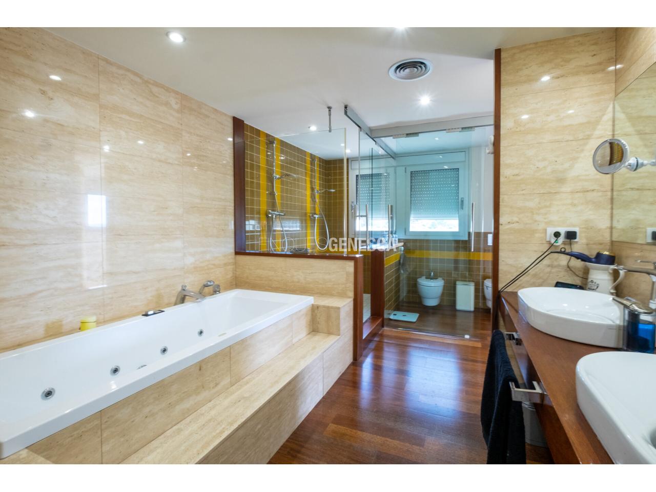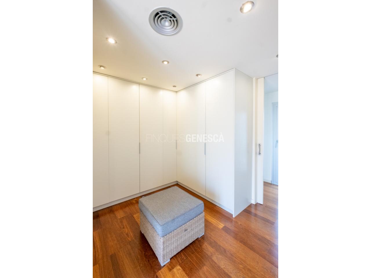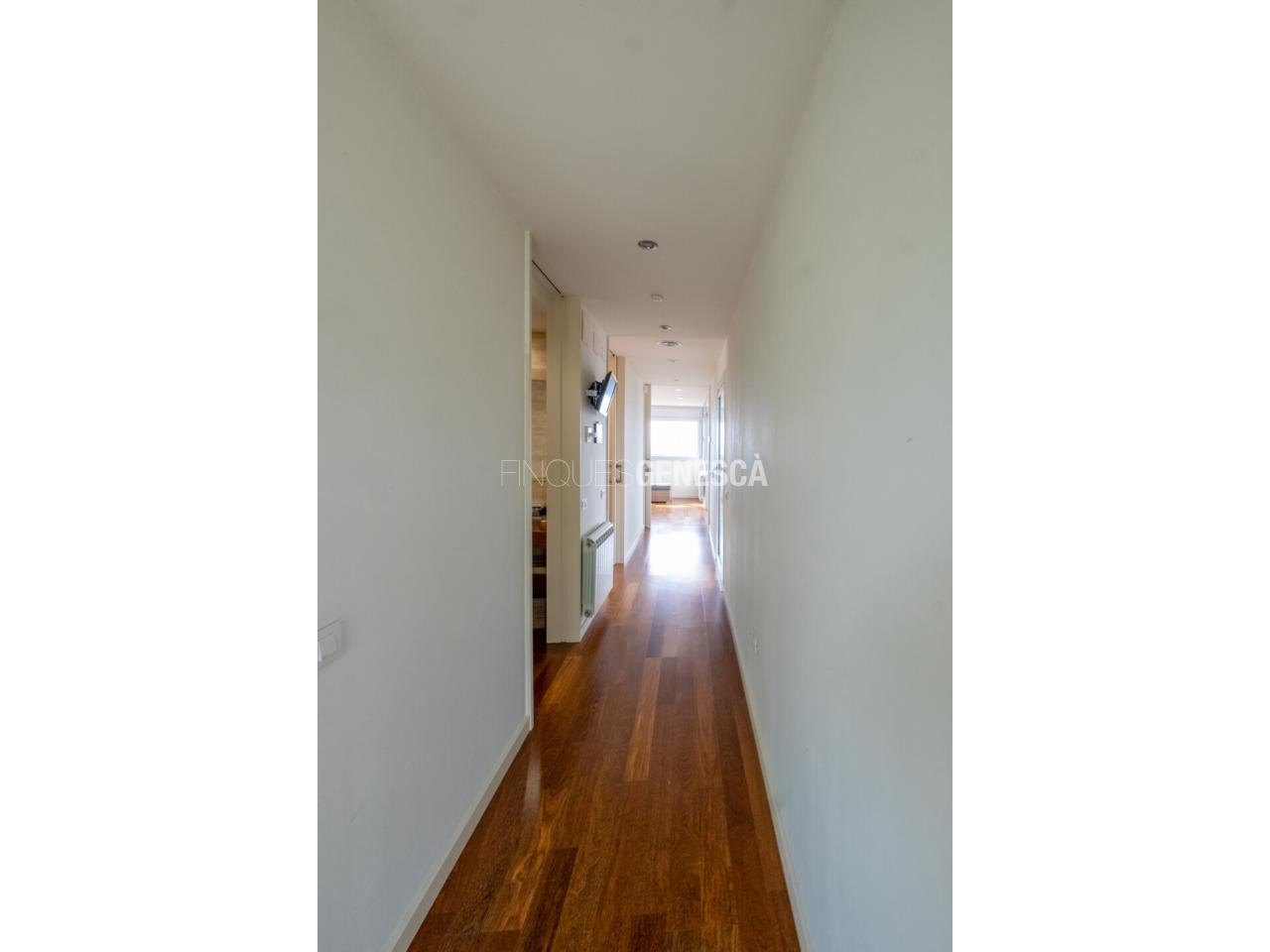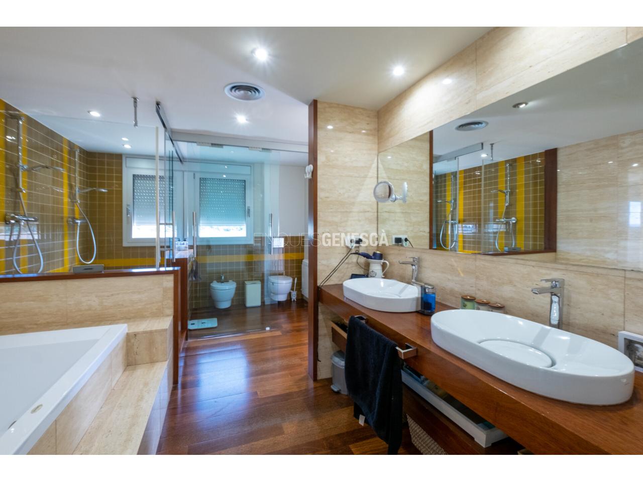 Els acabats són de primer nivell, amb parquet de fusta tropical de lama ampla tipus tarima, que aporta calidesa, elegància i continuïtat visual als espais.